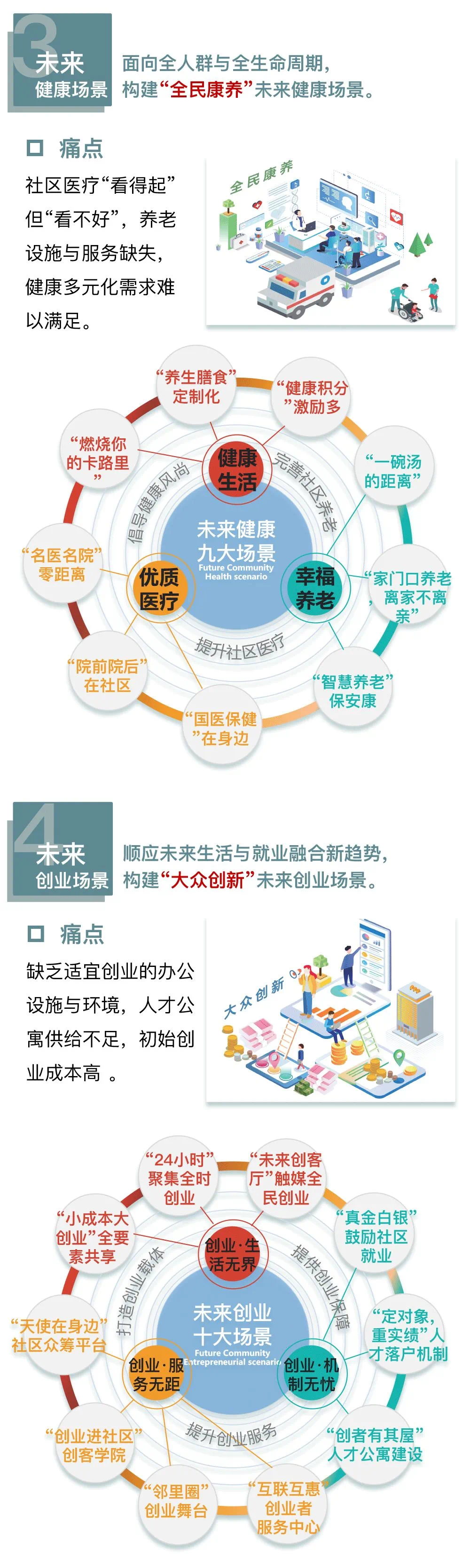 “未来社区”是以人本化、生态化、数字化为价值导向,以未来邻里、教育、健康、创业、建筑、治理等九大场景创新为引领的新型城市功能单元。