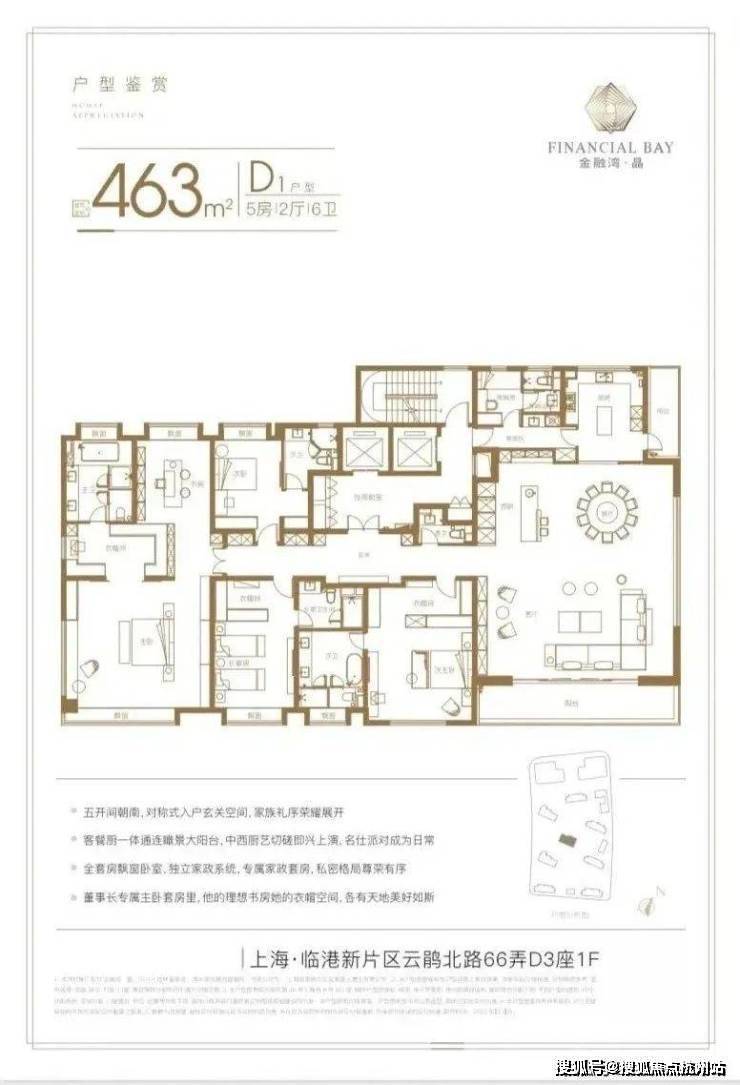 只有超强魄力,才为临港留下一个足以传世的大宅。这套建面约325㎡样板房,足以窥见开发商对尺度的追求。 5房3厅5卫准全套房奢华设计 ,让至少三代人都能在此住得更好,生活得更好。