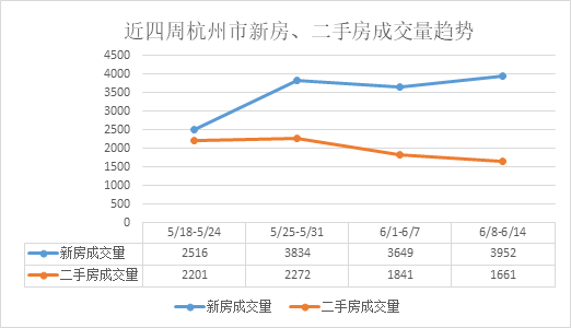 从上周成交量来看,杭州新房成交量总计3952套,二手房1661套。杭城新房的成交量有所上升,二手房成交量出现持续走低现象。总的来说,六月上旬新房成交量总计7601套,延续了较火热的趋势。在经历了两个月的放量成交后,二手房成交量连续两周下降,市场稍微显疲软。