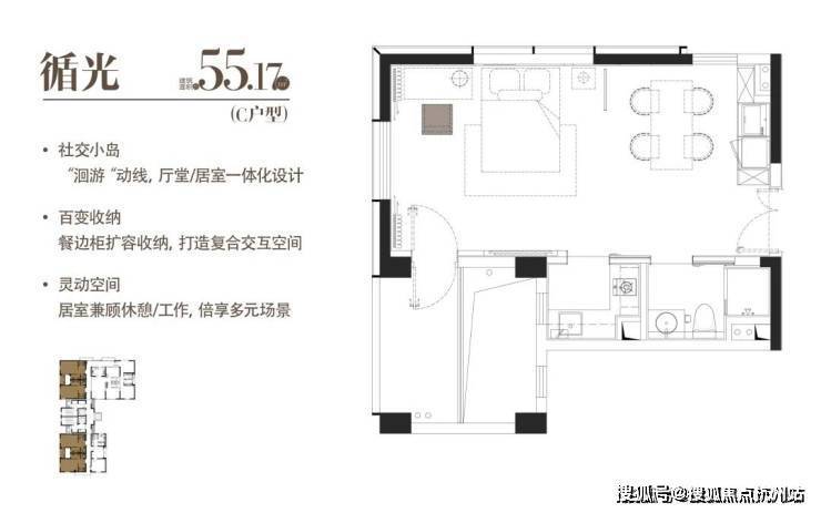 C|循光|建面约55.17 m²|一室一厅一厨一卫