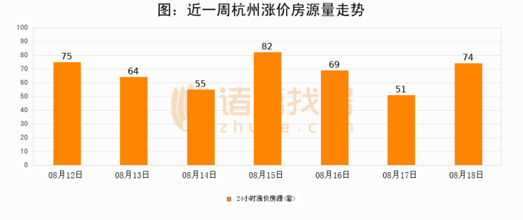根据诸葛找房数据显示,杭州24小时涨价房源量为74套,较08月17日增加23套,环比上涨45.1%。与此同时,涨价房源占比小幅扩大,业主信心有所提升。