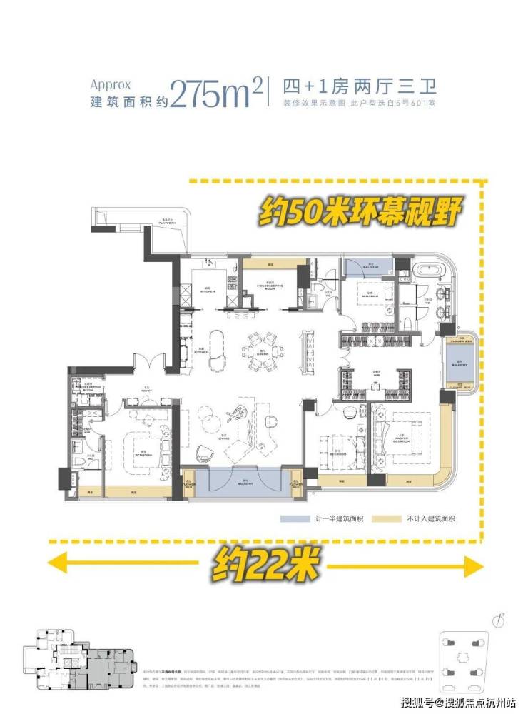 275 ㎡户型 全屋约50米环幕视野,南向约22米采光!