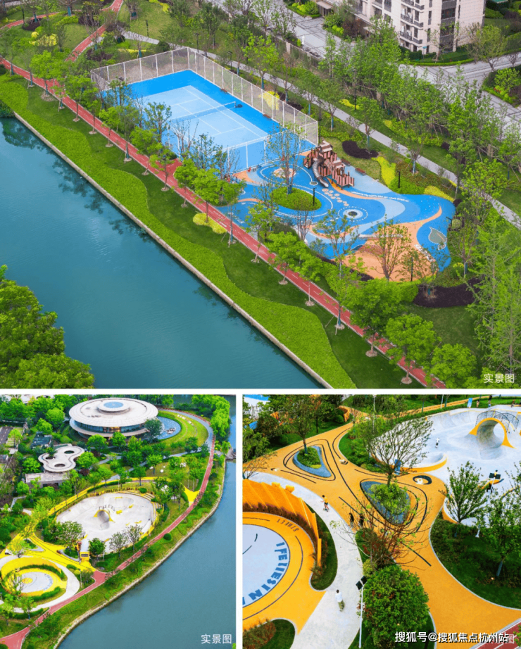 作为稀缺的滨水TOD,光合上城依托自然水系,打造了约20万方的滨水双公园!不同于常规“横向生长”的园林,保利创新性地将公园纵向延伸。打造了0m上的滨水公园,10m上的体育公园,17m上的社区园林三大主题空间。