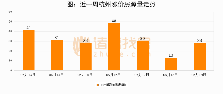 根据诸葛找房数据显示,杭州24小时涨价房源量为28套,较05月18日增加15套,环比上涨115.4%。与此同时,涨价房源占比小幅扩大,业主信心有所提升。