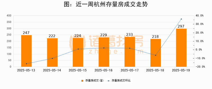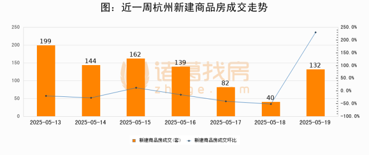 【杭州成交日报】05月19日新房成交132套、二手房297套;涨价房源28套