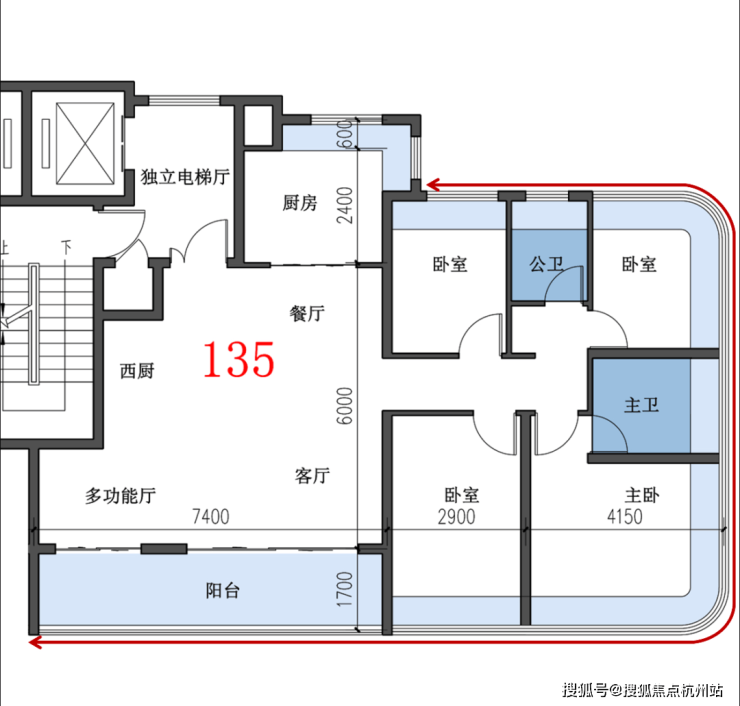 135㎡的4房,真正做到了动静两个功能区的清晰划分,同样是两个卧室做到了270°的转角飘窗;多功能厅可根据自身需求设计。