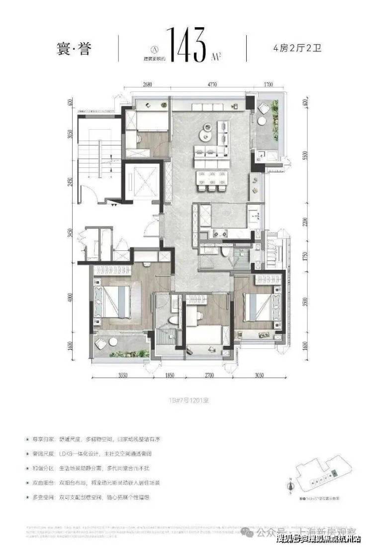 建面约143㎡4房样板间展示如下