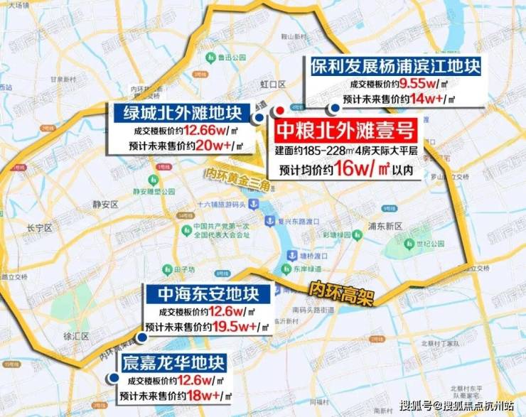 区域内的价格梯度已然形成,黄浦核心区房价已冲破20万/㎡,虹口区瑞虹板块新房突破16w+/㎡,北外滩、陆家嘴新房房价即将站上20万/㎡高位!
