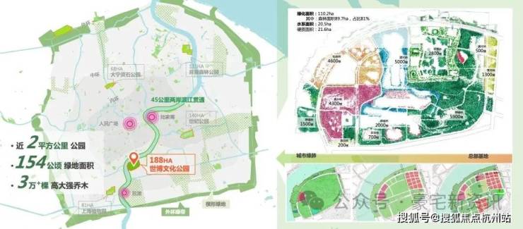 约200万方世博文化公园+前滩百万方公园群+三林绿地,共构成约700万方滨江公园,成就滨江双S湾最大的百万方公园群