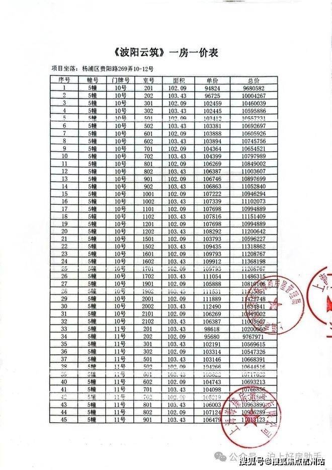 前期房源一房一价表▼