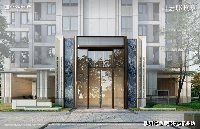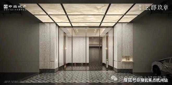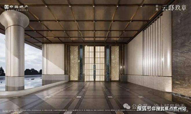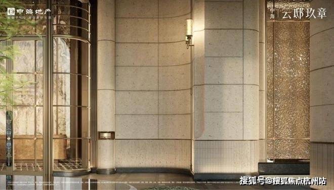 中海云邸玖章售楼处电话400-965-9259入口两侧的墙面采用天然淡黄色木纹大理石——“法国木化石”,入口门厅“曲屏”更考验弧形玻璃成型的工艺,以及施工成本。