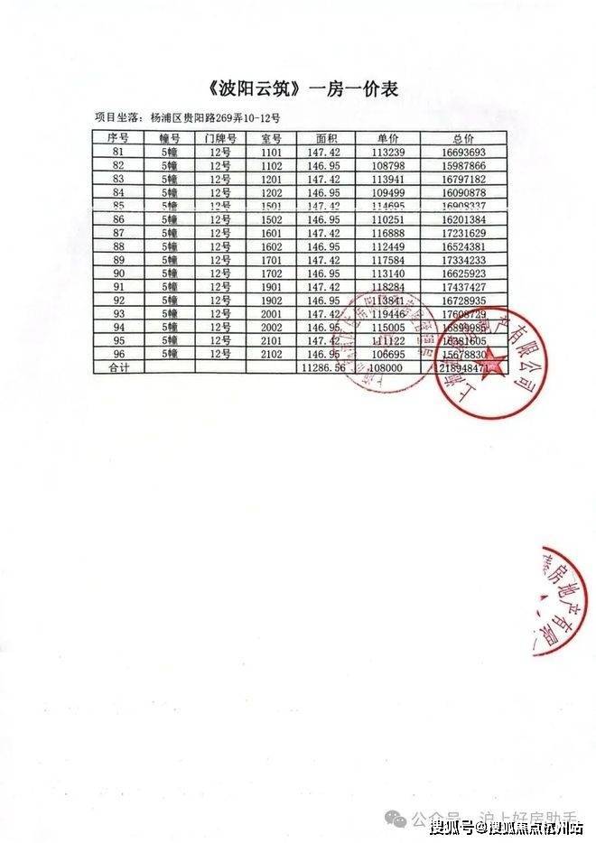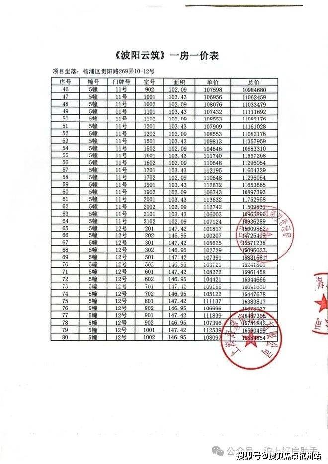 项目加推房源一房一价表▼