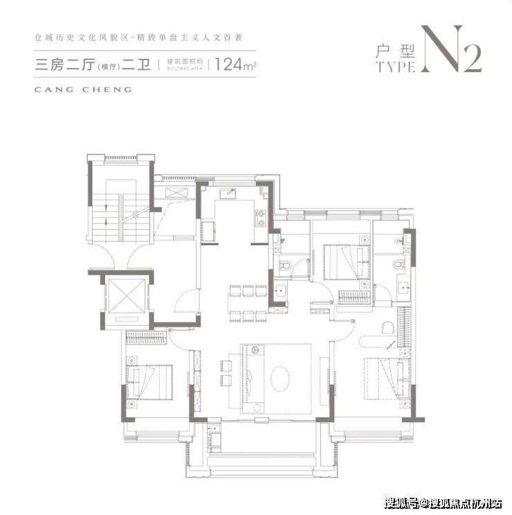 ①小高层/洋房:95-124㎡三房二厅二卫、145㎡四房二厅三卫;