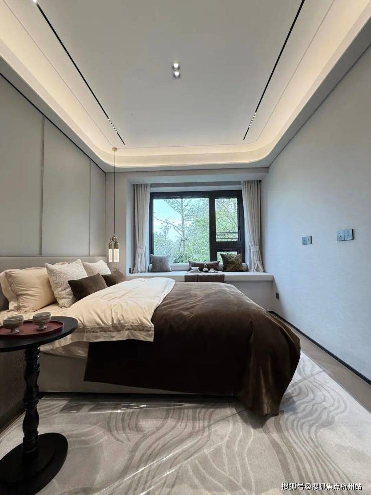 其中主卧的270°转角飘窗就有约5.7m²,通过与外立面的结合,直接做了梳妆台和储物柜,拓展了飘窗的实用性。