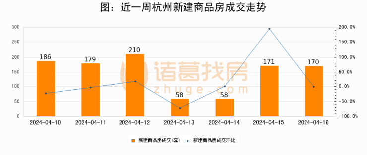 【杭州成交日报】04月16日新房成交170套、二手房279套;涨价房源87套