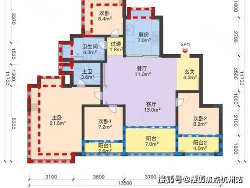 用户价值解读:四开间朝南设计,南向面宽超13 米,堪称 “采光王者”。四房设计可轻松容纳三代同堂,动静分区明确。南北双阳台(观景 + 家政),主卧配备独立衣帽间,是一步到位、终极改善的理想户型。