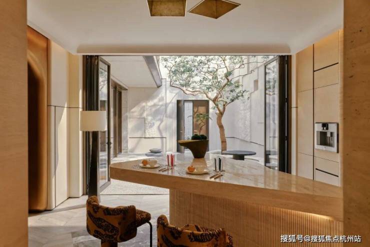 从闹市中步入狭长小径,及至打开自家院落大门,一方庭院映入眼帘,在寸土寸金的闹市中显得弥足珍贵。一汪极简主义的泉流成为点睛之笔,它如许清澈,如许淡然,也如许神秘,抚平都市喧嚣带来宁静。