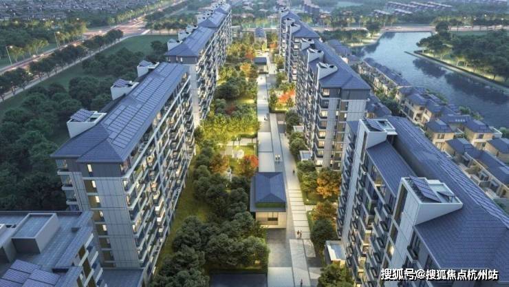 项目容积率仅约1.5,由3层联排别墅+10层墅境平层组成,整体环河排布。