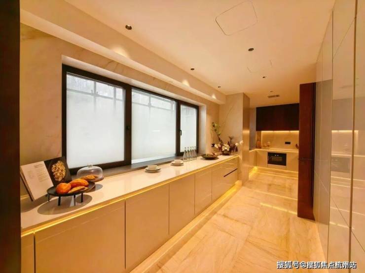 更细节的是,西厨吧台采用“东方木纹石材”,独特纹理与质感让每一次咖啡手冲都成为“生活美学的展示”。