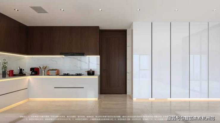 更细节的是,西厨吧台采用 “东方木纹石材” ,独特纹理与质感让每一次咖啡手冲都成为“生活美学的展示”。