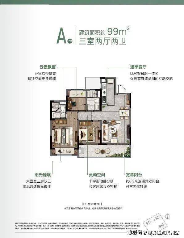 河畔雅宅:99㎡,南北通透,主卧套房设计,适合首次置业者