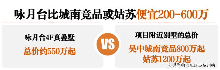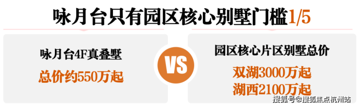 先看别墅价格:咏月台4F别墅550万起,是园区1/5价格,比同片区竞品还便宜200-300万,直接省出别墅装修钱,首开当天直接清盘。