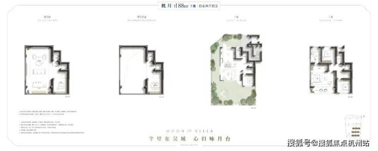 最后再来看下约172-188㎡抬地叠墅户型,4层真叠墅设计,均是高赠送户型,最大享约125㎡前庭后院