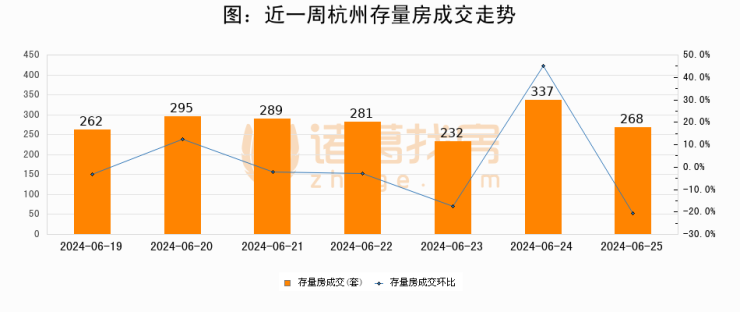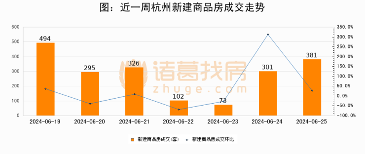 【杭州成交日报】06月25日新房成交381套、二手房268套;涨价房源109套