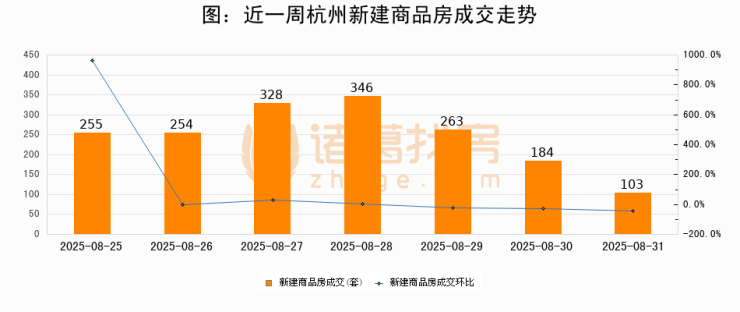 【杭州成交日报】08月31日新房成交103套、二手房148套;涨价房源21套