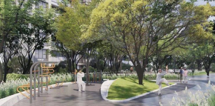 9.8公里生态大堤 这条生态水岸总绿化面积达到了200万方,包含庭院式绿化、市民公园、慢行系统等功能