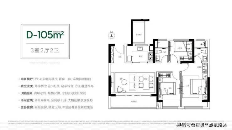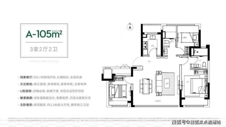建筑面积约105平的户型有两种设计,是南向约5.6/5.7米横厅设计,空间感比得上市面上的120平户型。3房2卫的设计,兼顾了居住的功能性和舒适性。多飘窗的设计,有效延伸了室内空间,大大增加了实际使用面积。