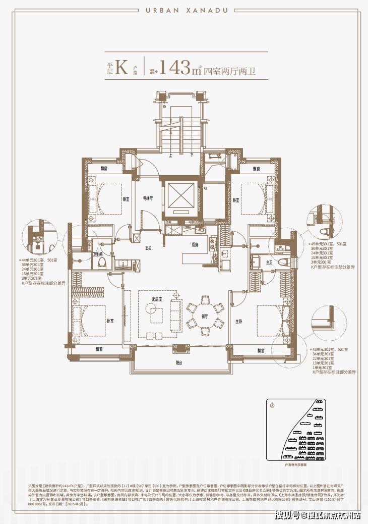 建面约139㎡上叠户型,三层是会客区,四层是居住区,阳台+露台+多个飘窗设计,附加空间非常大,在别墅类产品中实属罕见!