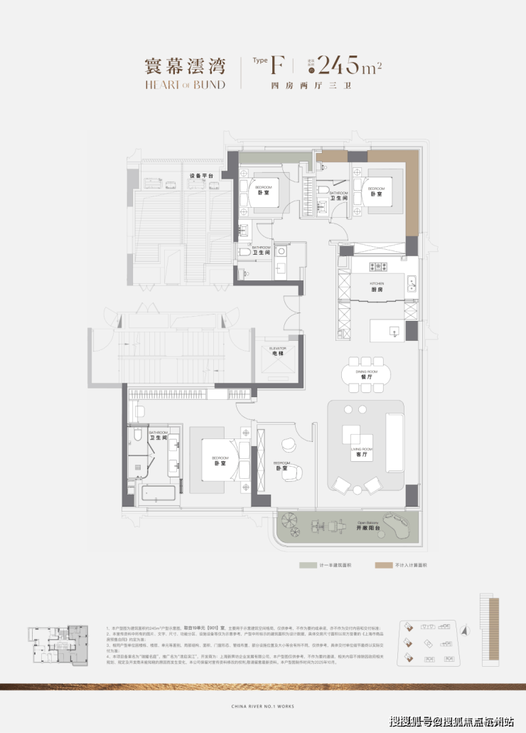 245㎡四房两厅两卫,江景+园景双面盛景,约17m边厅视野+独权主卧,南向浴缸体验极致享受。