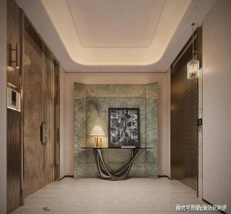 玄关地面石材拼花汲取孔公馆花窗灵感,复刻百年建筑美学;客餐厅采用天鹅绒肌理艺术漆搭配弧形吊顶,线条优雅、质感温润。
