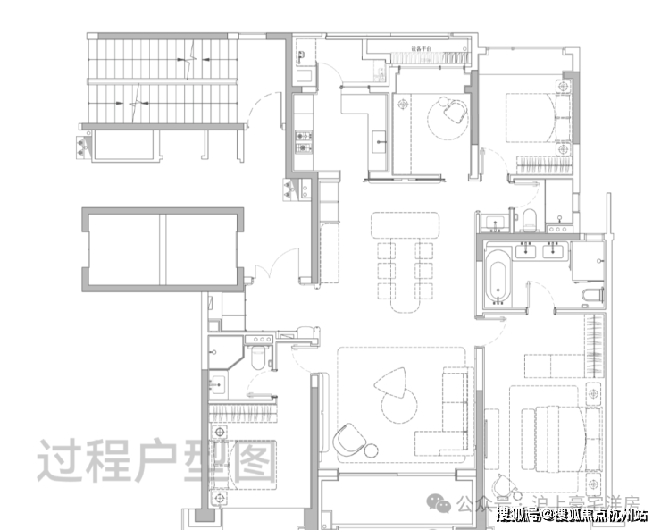 主卧配置步入式衣帽空间、双台盆+大浴缸主卫。