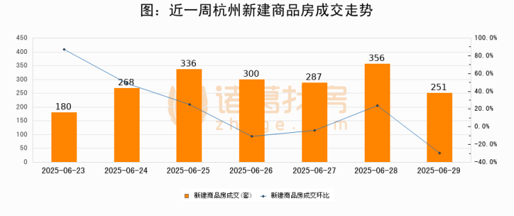 【杭州成交日报】06月29日新房成交251套、二手房181套;涨价房源27套