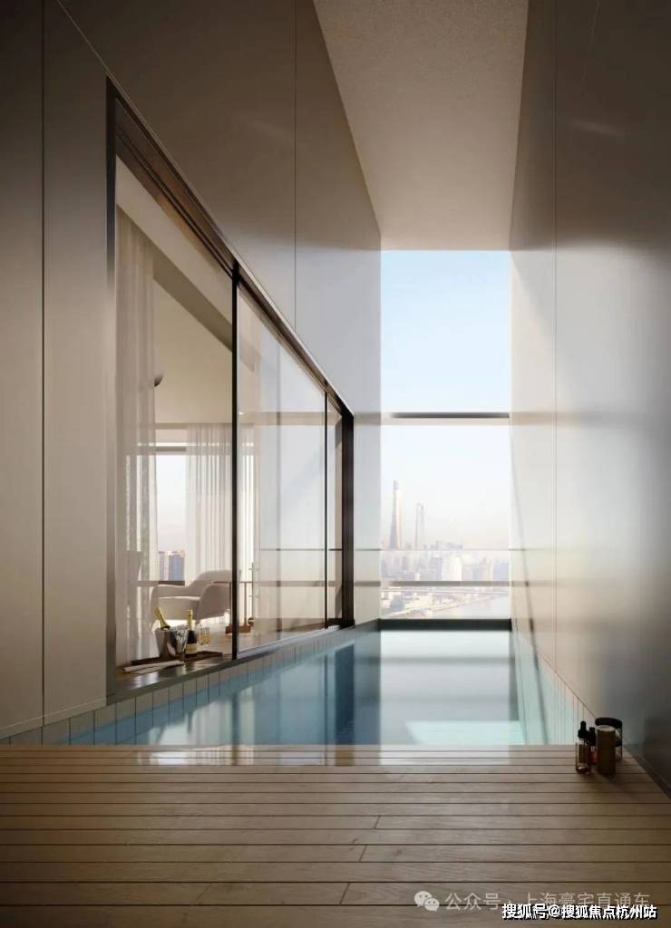 景观设计方面,保利世博天悦采用引江入园、以水带路的手法,将滨江舒阔的国际生活平移到社区内,打造约6万㎡景观秘境,媲美全球奢华酒店。采用大面积的留白和现代禅意的表现手法,呈现开阔舒展的质感。