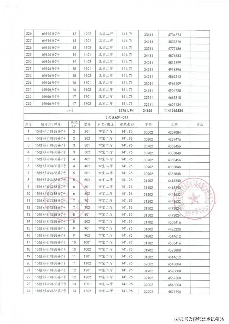 一房一价表