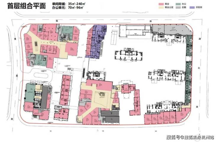 同时,项目规划将商业活力集中 布 置于平凉路、福禄街等主要界面,而将住宅群落向内退让,围合出 静谧的中央花园 。