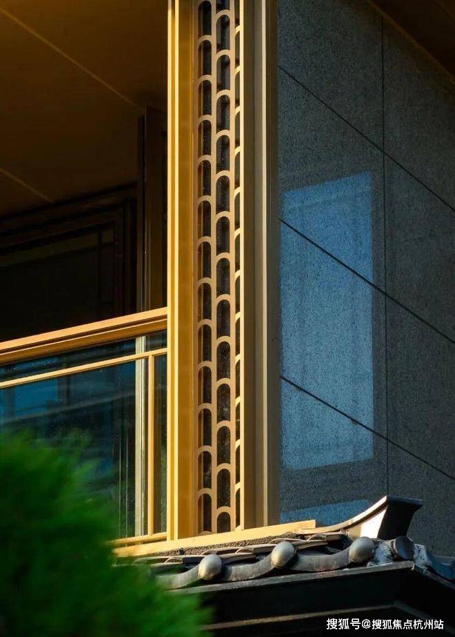 三重屋檐,代表天地人融合的东方宫殿最高等级,上檐、外檐、下檐三重结构,现代立面,以铝板、格栅、石材、瓦墙型材、玻璃等现代型材,彰显传世之宅的独特气度。