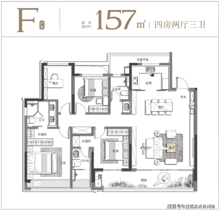 在临平,在杭州,能同时把面宽、阳台、方厅、双套房做到这个量级的157㎡,屈指可数。它用数据回答了什么是“越级享受”——用350万级的总价,住出170㎡+的体验。