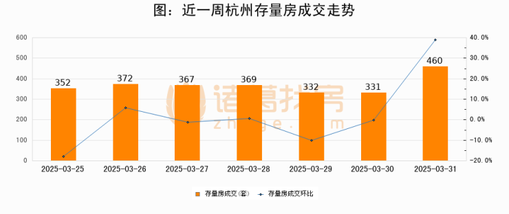 【杭州成交日报】03月31日新房成交597套、二手房460套;涨价房源68套