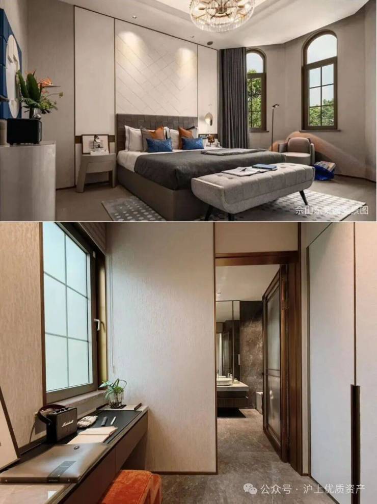 卧室配置更衣室、卫生间及阳台。主卧更显奢华,独立书房及步入式衣帽间诠释由内而外的儒雅气质,开阔露台留给诗和花的自由空间。
