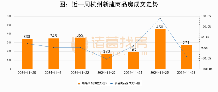 【杭州成交日报】11月26日新房成交271套、二手房250套;涨价房源56套