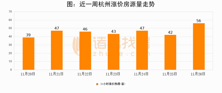 根据诸葛找房数据显示,杭州24小时涨价房源量为56套,较11月25日增加14套,环比上涨33.3%。与此同时,涨价房源占比小幅扩大,业主信心有所提升。