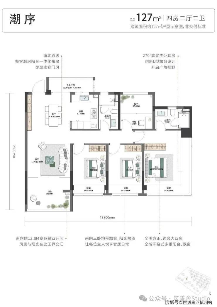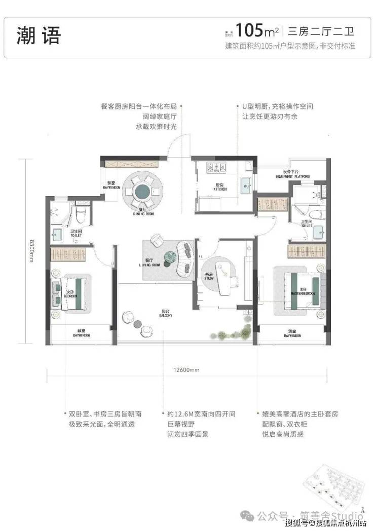 项目占地约6.4万平方米,地上建面约9万平方米,地下建面约5.7万平方米。潮映杭园凭借约1.4的低容积率,在金沙湖CBD核心区域精心规划了多元产品业态,涵盖约105-130平方米小高层、约139平方米洋房及约255-330平方米排屋,满足不同家庭的居住需求。首开7# 户型建面约105-127-130方。