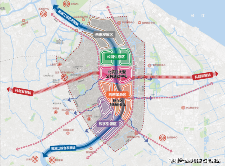 项目位于杨浦滨江“一岛两翼“黄金支点,向左是滨江南段产业核心,向右是复兴岛未来科创。