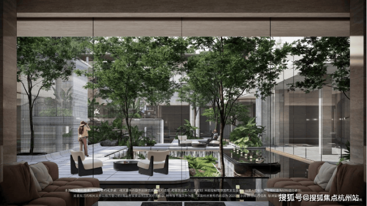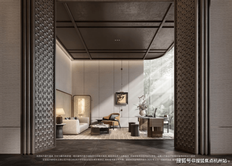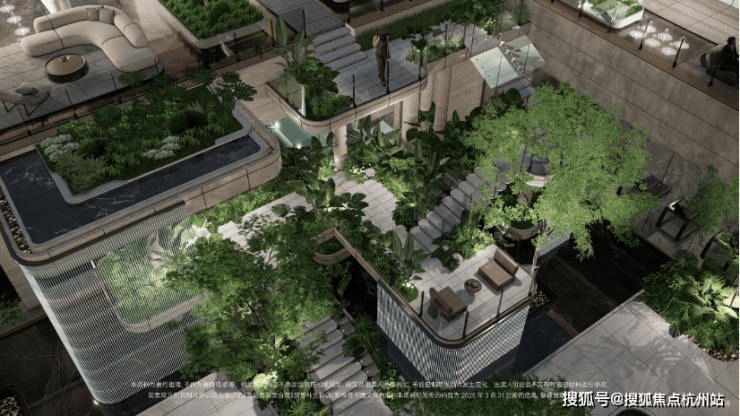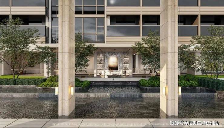 双轴线的设计,充分拓宽了视野面与观赏点位,环形回廊、精神游廊与下沉庭院通过立体景观平台相融,又创造出隔岸听泉的诗意场景。在会所、在架空层泛会所、在归家路上,每个重要生活触点,业主都能拥享独特景观和欣赏视野。