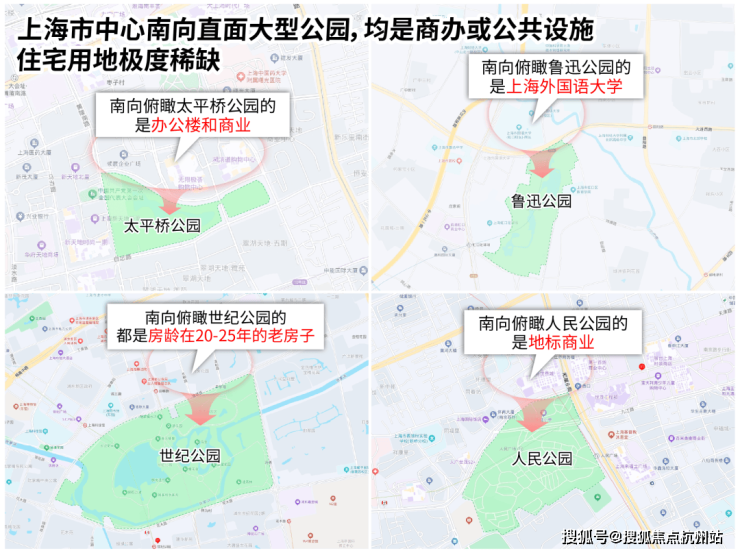 公园边界有限:公园的周长是固定的,能真正“直面”公园(而非斜视、侧视、有遮挡)的土地面积极其有限