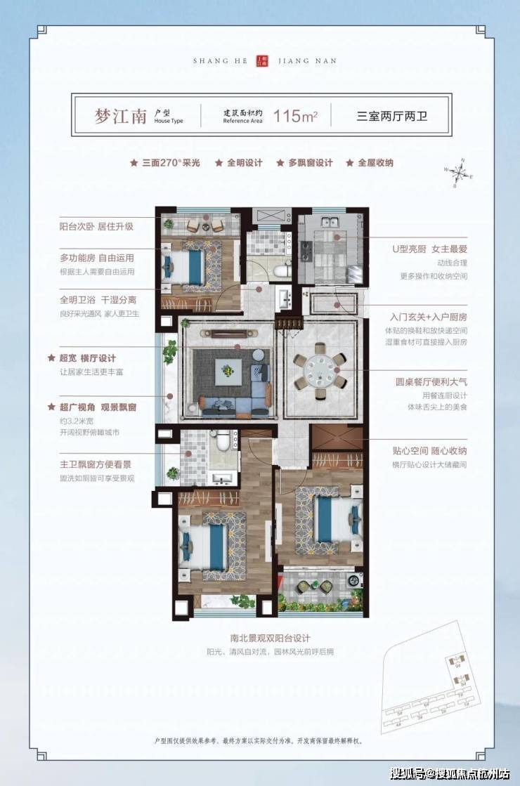建面约115㎡3房2厅2卫
